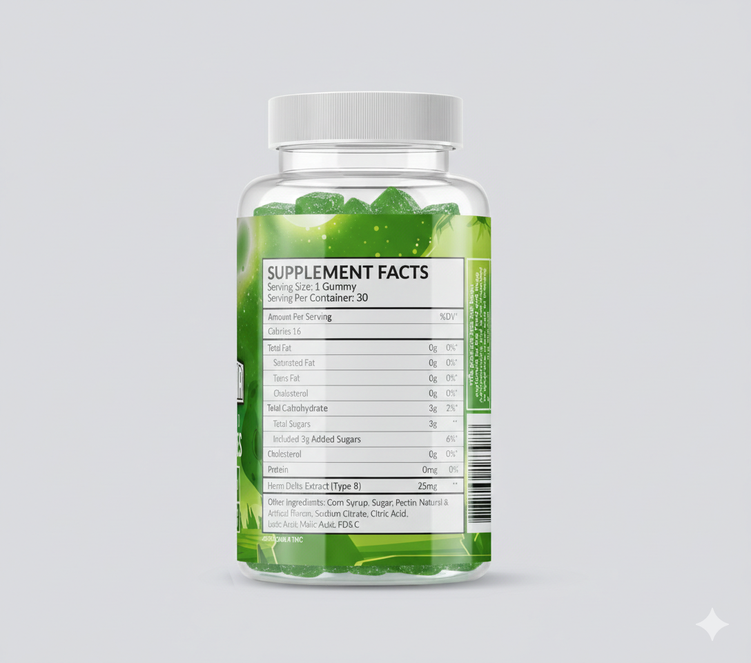 - 25mg of Delta 8 per gummy