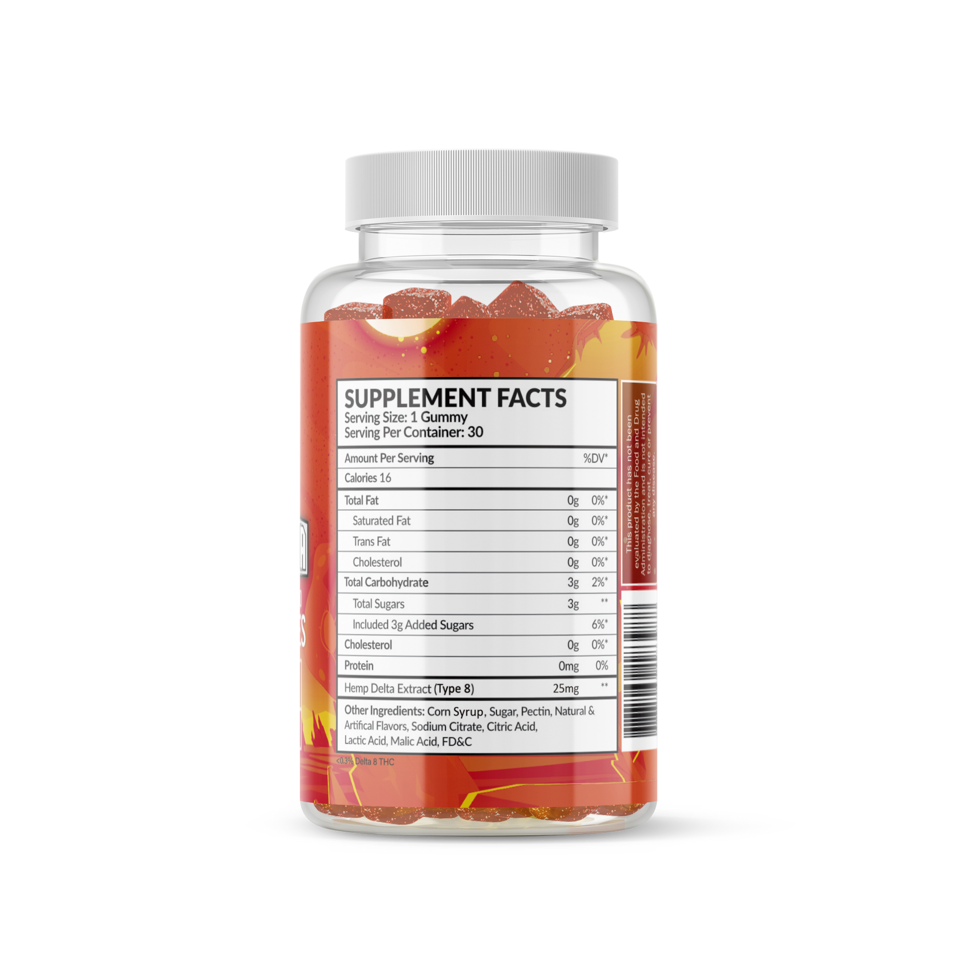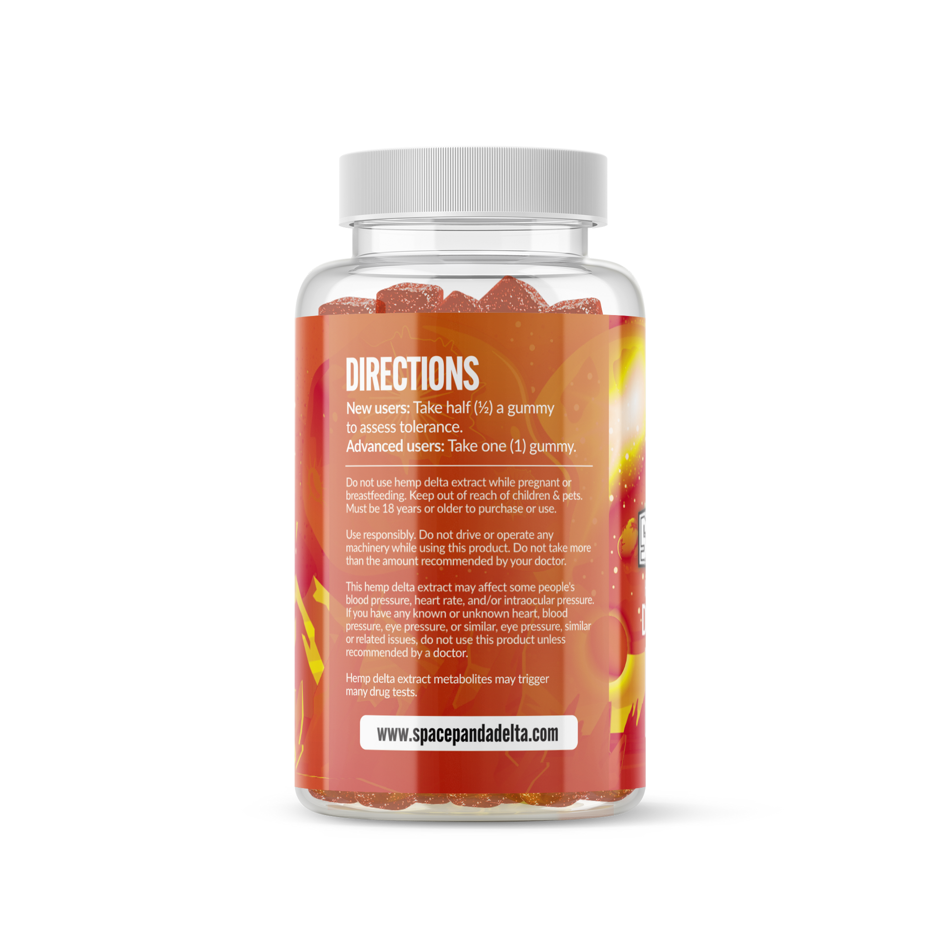 We recommend taking ½ or one whole Delta-8 Gummy. If it’s your first time trying a Delta-8 product, we suggest starting with a small serving size to become accustomed to the compound’s effects.