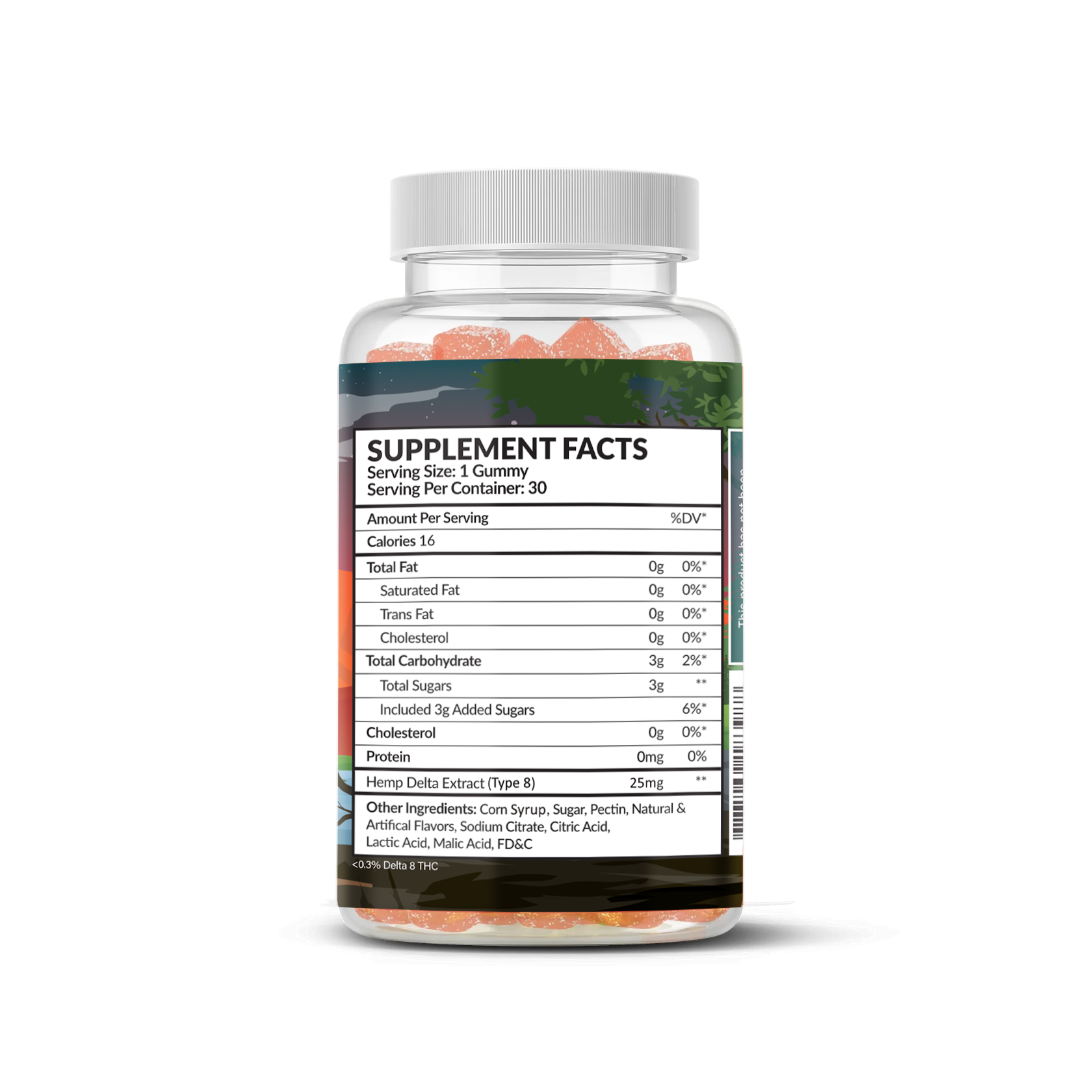 We recommend taking ½ or one whole Delta-8 Gummy. If it’s your first time trying a Delta-8 product, we suggest starting with a small serving size to become accustomed to the compound’s effects.